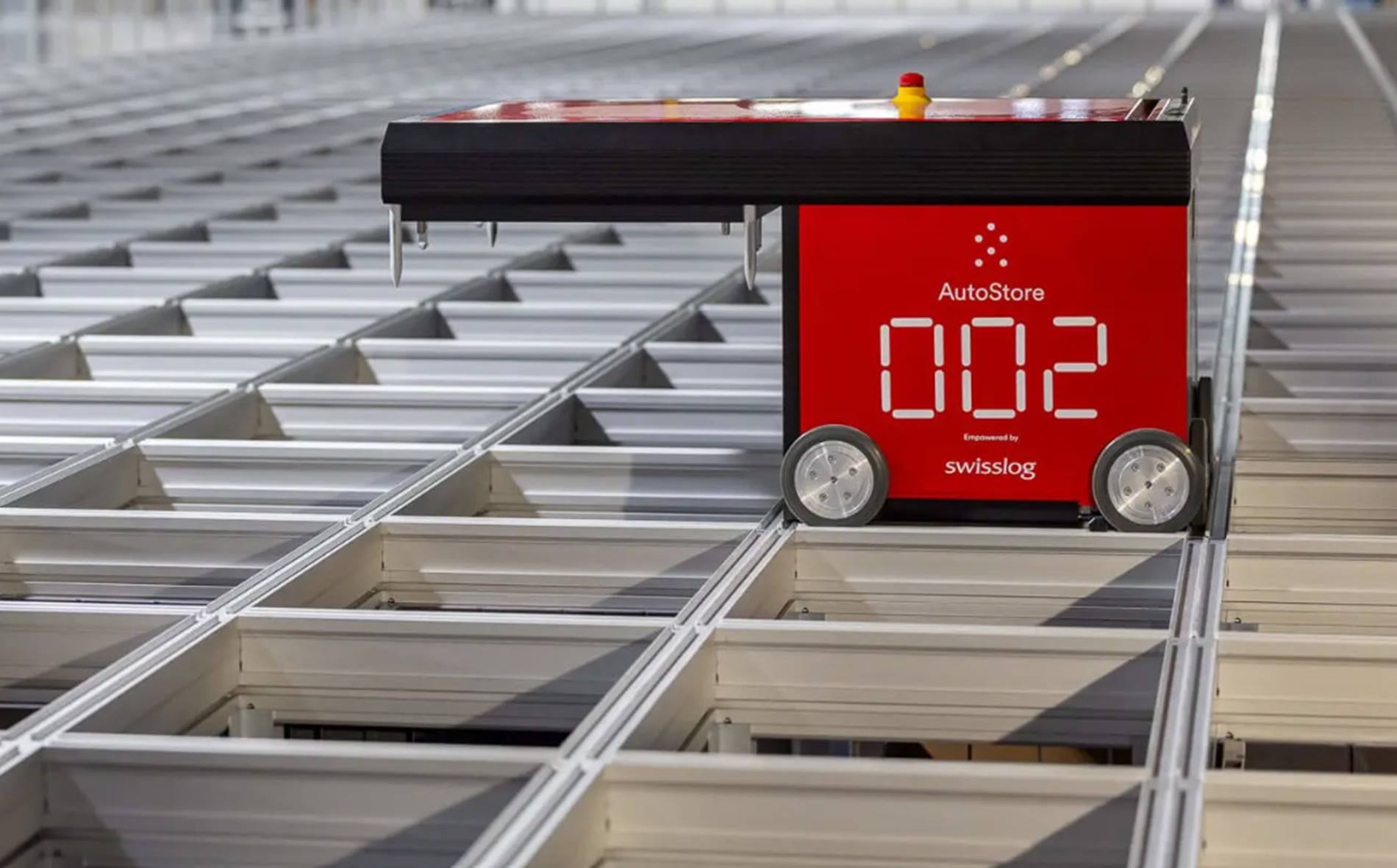 The AutoStore system operates within an existing 1,000 m² footprint, utilising 23 robots and 60,000 bins to store approximately 80% of small and medium-sized parts.